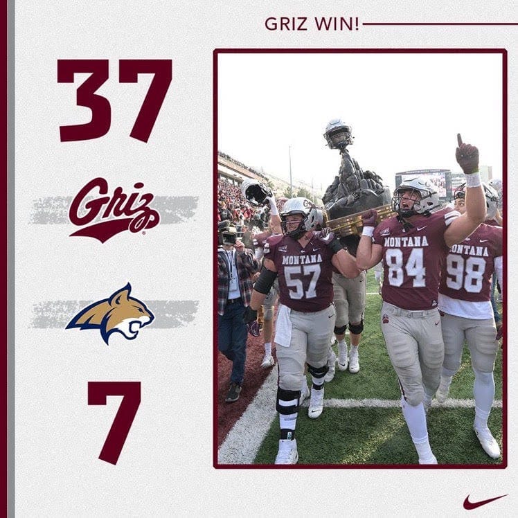 Today, this big beautiful rivalry reared its ugly head once again and it was the No. 3 Montana Grizzlies that steam-rolled their cross-state rivals by a score of 37-7. The Griz got things popping from the jump and never looked back.