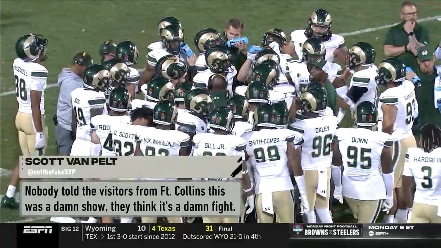 CU will crash back down to Earth a bit in the next few weeks (and almost did tonight) but the kids are having fun and the jokes are funny. Long live college football.
